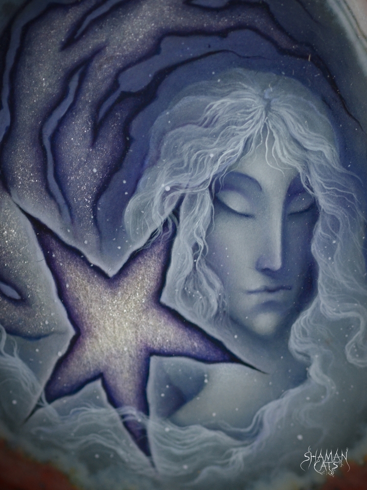 Кулон из тонированного агата, роспись маслом, сусальное золото, 5,5 см. Цепочка из нержавеющей стали 50 см.